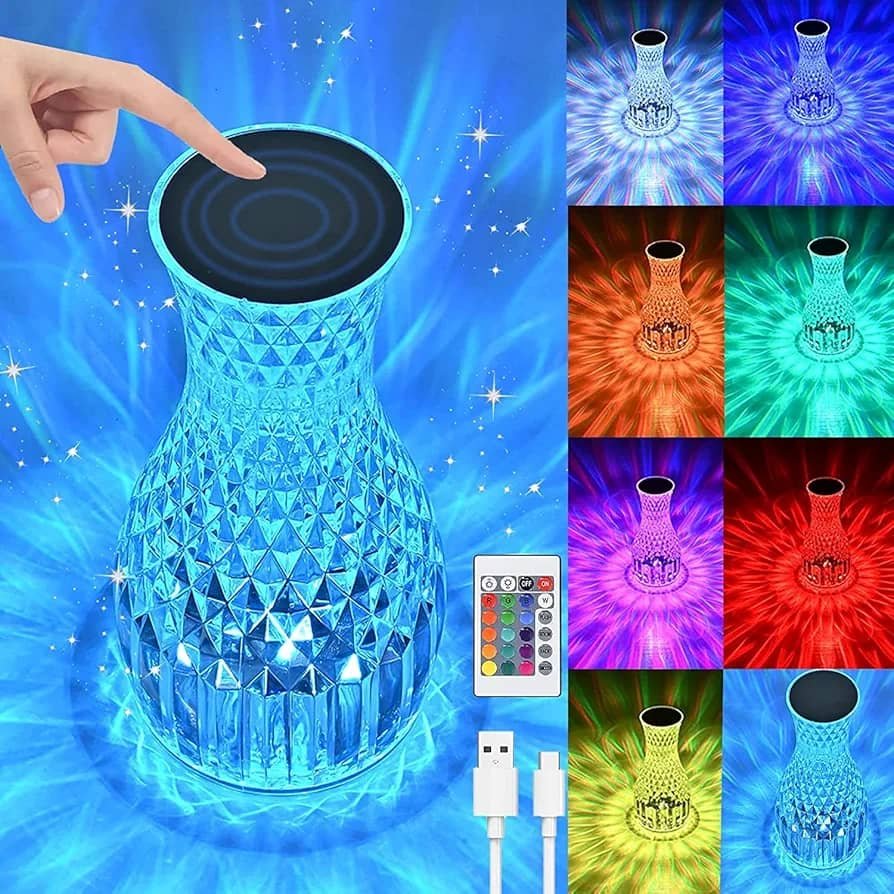 تعمل بالشحن USP مع كابل تايب سي، مما يجعلها ملائمة وصديقة للاستخدام اليومي. تصميمها على شكل ماس يضفي نمطاً مضيئاً مبهراً يدهش كل من يراه. مثالية لليالي الخاصة أو لتحسين ديكور المنزل بأناقة.