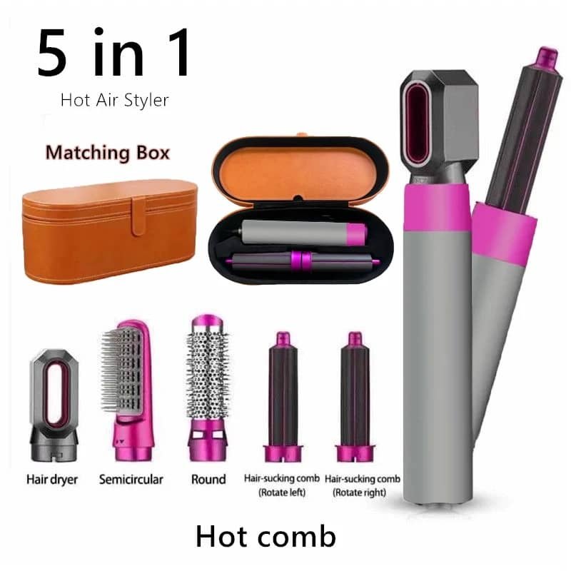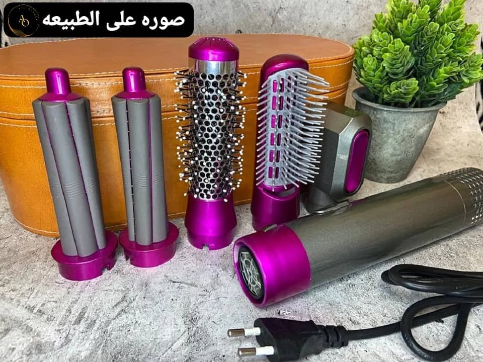 احصلي على أداة تصفيف متكاملة تجمع بين التمليس، التمويج، والتمشيط! مصفف الشعر الدوار 5 في 1 مزود بخمس فرش قابلة للتبديل، مصمم للعناية بجمال شعرك دون أي ضرر. هذه الأداة الشاملة تجعل عملية تصفيف شعرك بسيطة وسريعة أياً كان نوع أو طول شعرك.