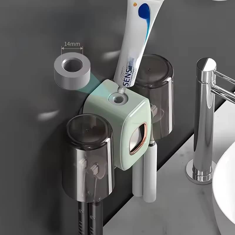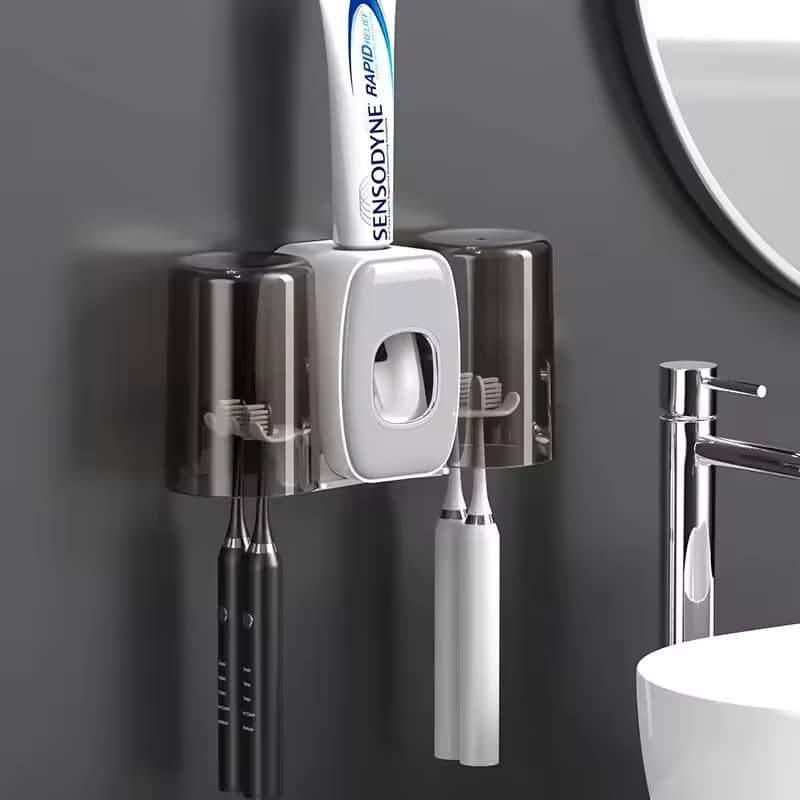 يتميز المنظم بتصميم ذكي وسهل الاستخدام ويثبت على الحائط دون الحاجة إلى حفر أو مسامير! ✔️ يوفر حامل مزدوج لكل من فرش الأسنان ومعجون الأسنان مع عصارة مدمجة تناسب أغلب الأنابيب.